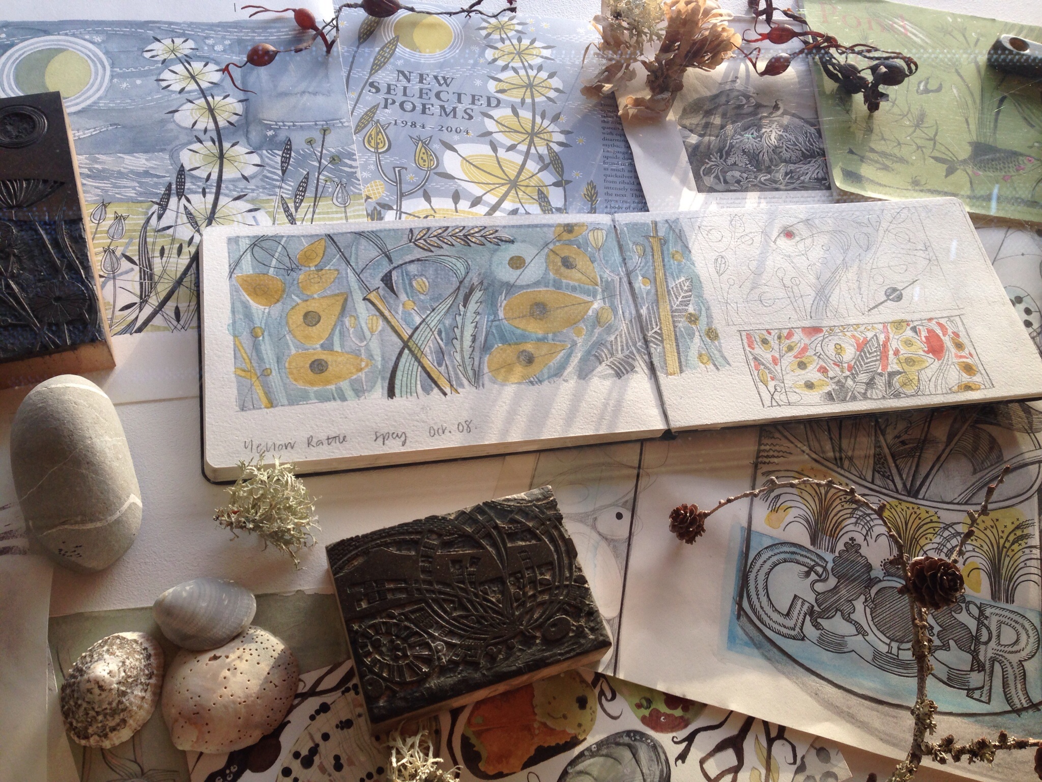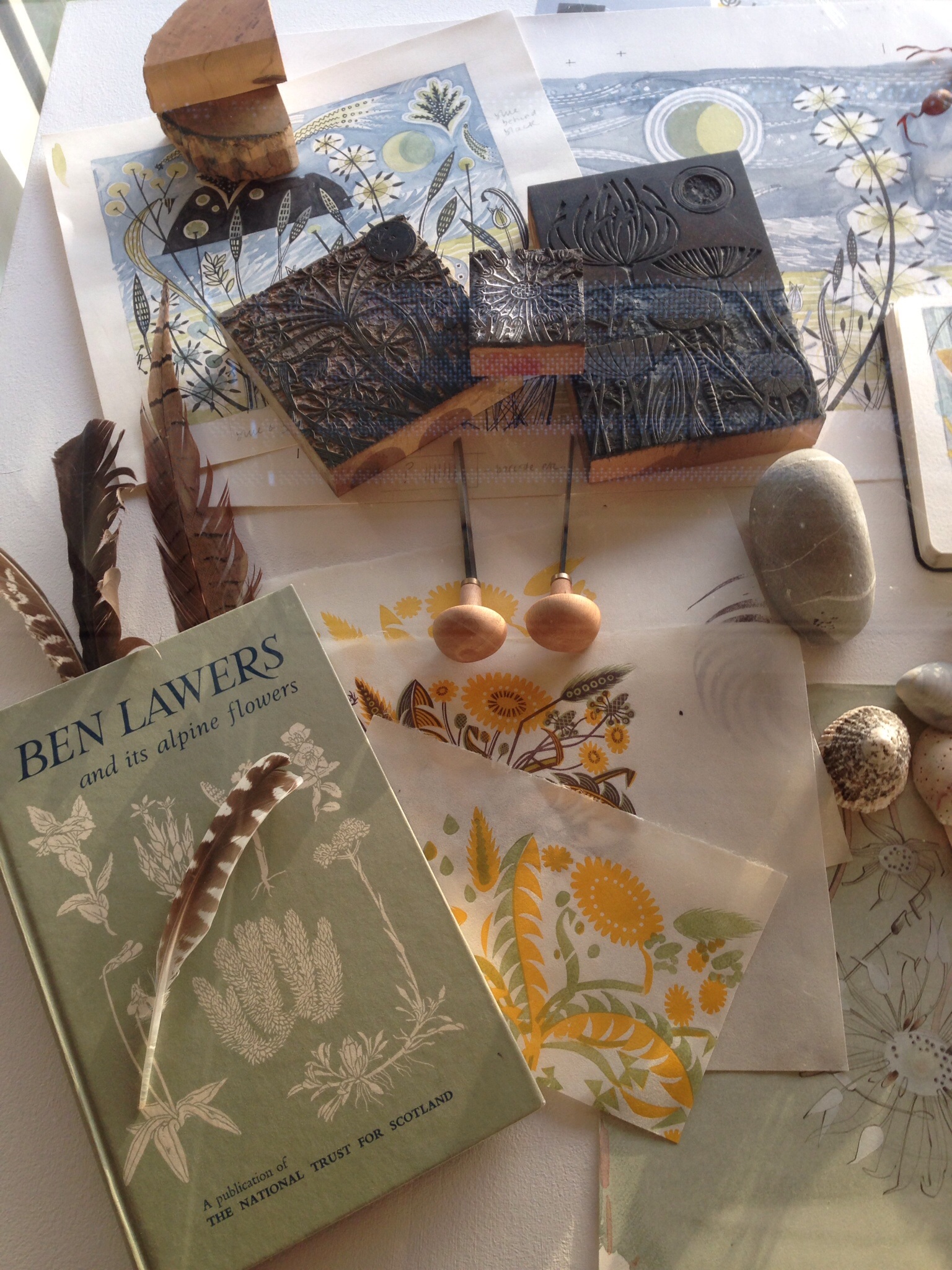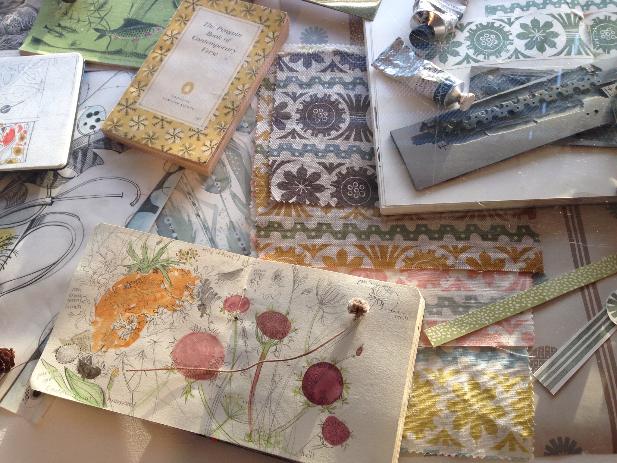 We recently visited the Yorkshire Sculpture Park to look around Angie Lewin’s exhibition, A Natural Line. Her work is absolutely beautiful and I’ve put together this mini gallery of photos of some of her sketchbooks and materials on display.
