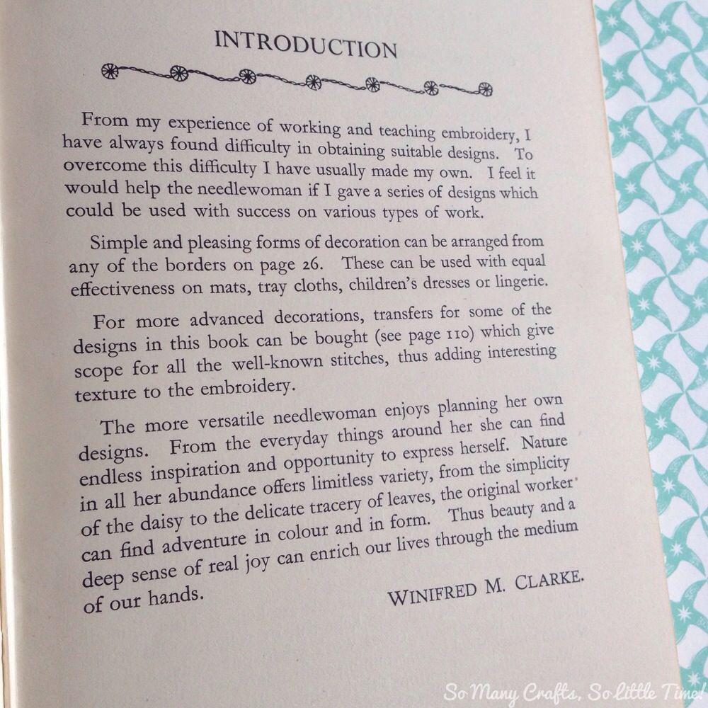 The second book is my favourite of the two. The Embroidery Book by Winifred M. Clarke was published in 1949, and features lots of beautiful designs of the time (which I imagine most sewists could recreate back then!). Throughout the book there are some beautiful diagrams showing how to do the stitches and the different designs used. I’m definitely going to have a go at sewing some of the designs, and there are some useful tips and ideas in this book which will hopefully allow me to do so!