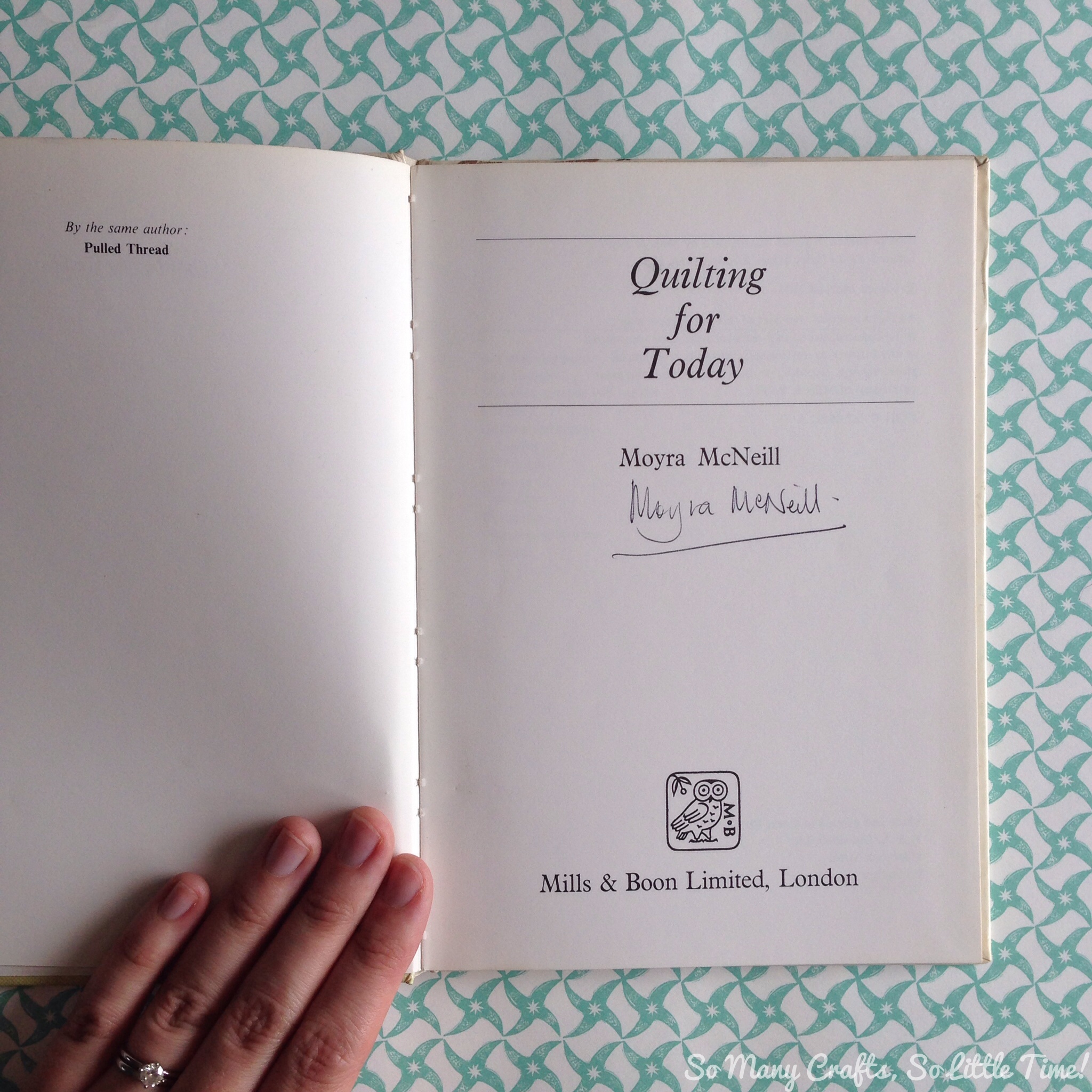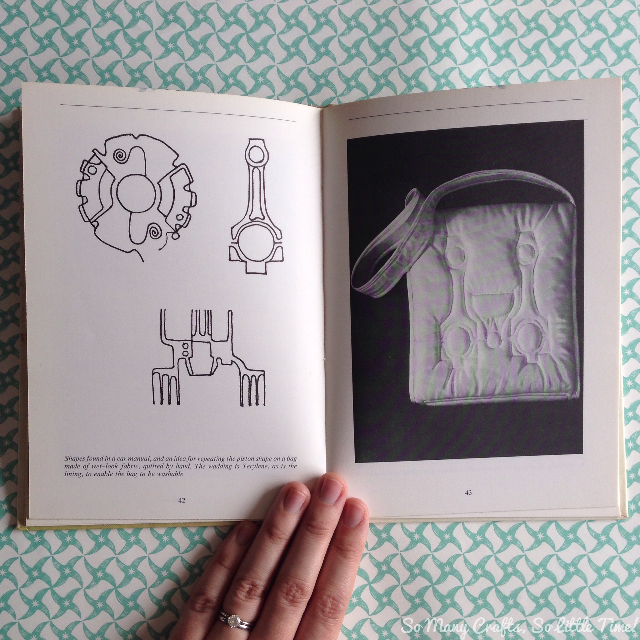 The first book is Quilting For Today by Moyra McNeill, and it is signed by the author, which is a bonus! It was actually written in the 70s and I love looking at the modern 70s styles here. The quilting based on parts of a car is particularly wonderful, as are the quilted garments!